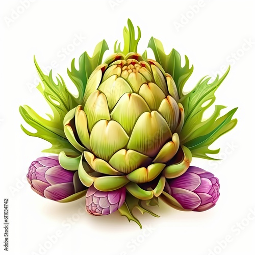 Obraz premium Artichokes vegetable isolated on white background, flat illustration. Generative AI