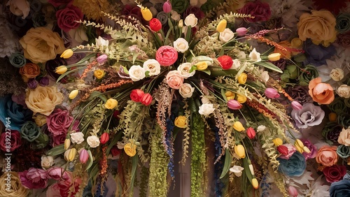 © Kartik, Fototapeta premium Artificial flowers background decoration artificial flower fabric bouquet backdrop background