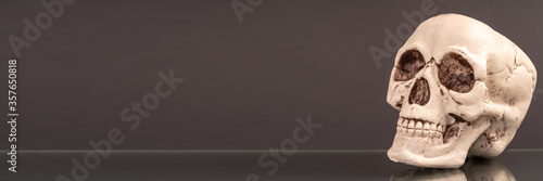 © luchschenF, Obraz premium Artificial human skull on a colored background.