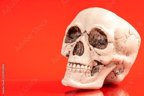 © luchschenF, Obraz premium Artificial human skull on a colored background.