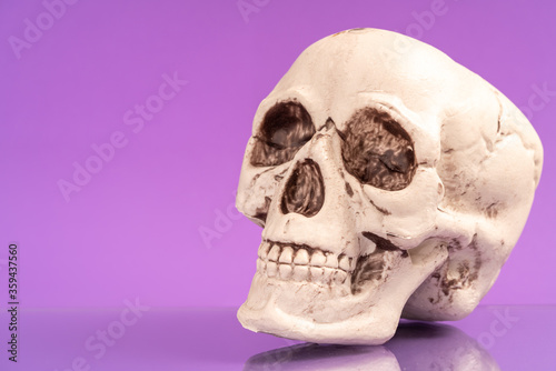Obraz premium Artificial human skull on a colored background.