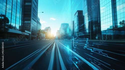 Fototapeta premium Artificial Intelligence AI circular interface in middle of city street next...