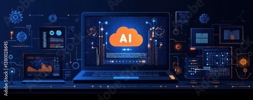 © Art_You, Obraz premium Artificial intelligence and data processing concept with laptop and digital elements