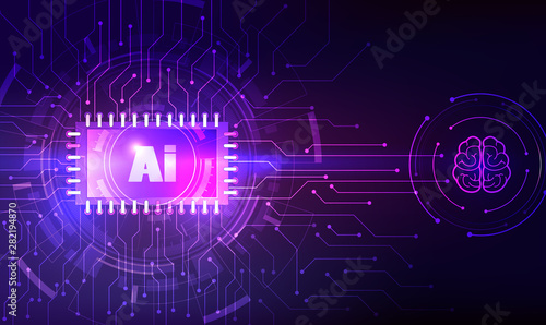 © chanut, Obraz premium Artificial Intelligence and Machine Learning Concept. Vector illustration symbol AI. Microchip and another modern technologies concepts.