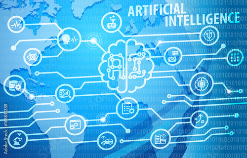 © arrow, Obraz premium Artificial Intelligence Automation Infographic Background