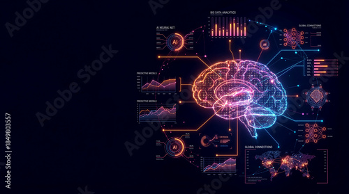 © FoxGrafy, Obraz premium Artificial Intelligence Brain and Big Data Analytics Network