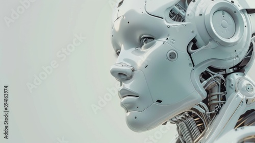 Fototapeta premium Artificial Intelligence Concept - A White Robot with Detailed Facial Features