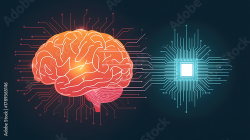 © Designer Sonali, Fototapeta premium Artificial intelligence concept showcasing human brain connected to computer circuit, representing machine learning and future tech innovation