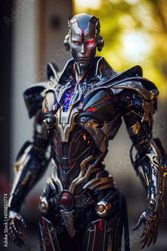 © whilerests, Fototapeta premium Artificial intelligence cyborg man portrait. Cybernetic metal robot avatar. Generative ai