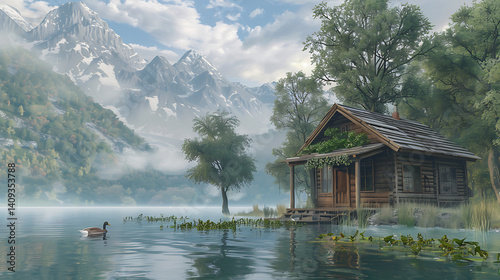 © Ayan BaBa, Fototapeta premium Artificial Intelligence-designed wooden house