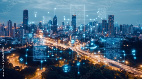 Fototapeta premium Artificial Intelligence Enhancing Digitalization in Urban Development,...