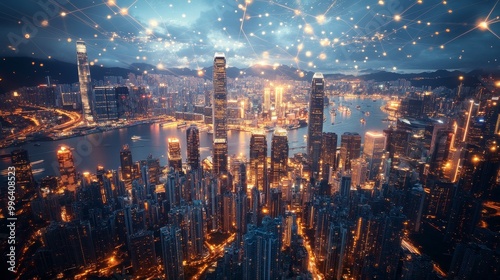 © 楠 刘, Fototapeta premium Artificial Intelligence Enhancing Digitalization in Urban Development, Streamlining Paperwork, Optimizing Transportation Systems, and Making Cities Smarter with Advanced Technology Solutions.