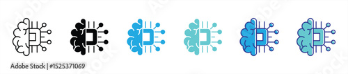 Fototapeta premium artificial intelligence icon set. containing brain tech fusion, capturing the intersection of human intelligence and machine computing, icon thin line and color style. vector illustration