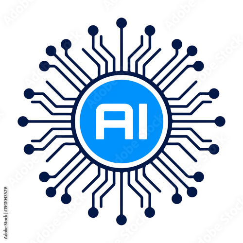 Obraz premium Artificial Intelligence icon Stylized blue padlock icon centered within...