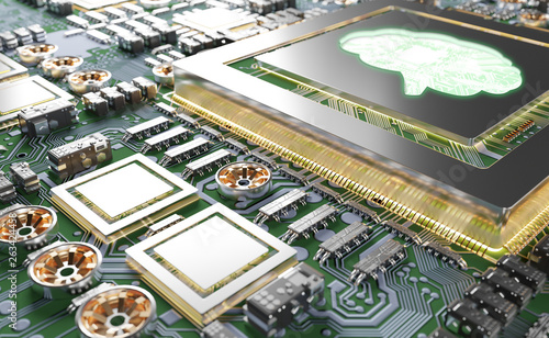© sdecoret, Obraz premium Artificial Intelligence in a modern GPU card 3D rendering
