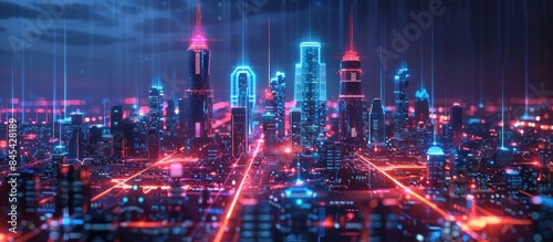 Fototapeta premium Artificial intelligence looking at smart city, connected with planet through...