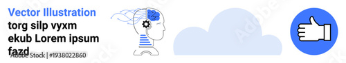 © robu_s, Obraz premium Artificial intelligence, machine learning, cloud computing, data integration, innovation, technology trends. Brain with gear, cloud and thumbs-up icon. Artificial intelligence and cloud computing