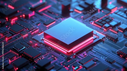 © Johannes, Fototapeta premium Artificial intelligence microchip. Microprocessor with AI technology
