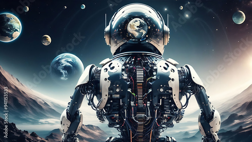 Fototapeta premium artificial intelligence robot background with space