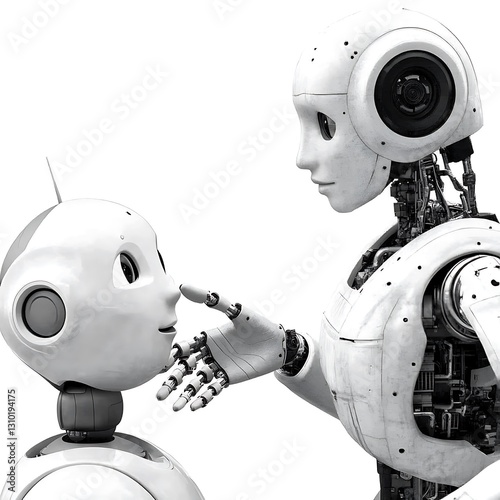 Naklejka premium Artificial Intelligence Robots Interacting Creating a Bond of Contact and Care