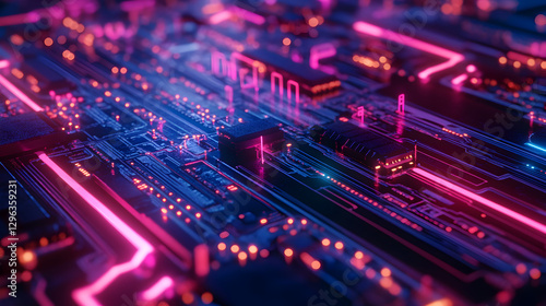 © Nattavee, Obraz premium artificial intelligence with a neon circuit board structure and dynamic lighting