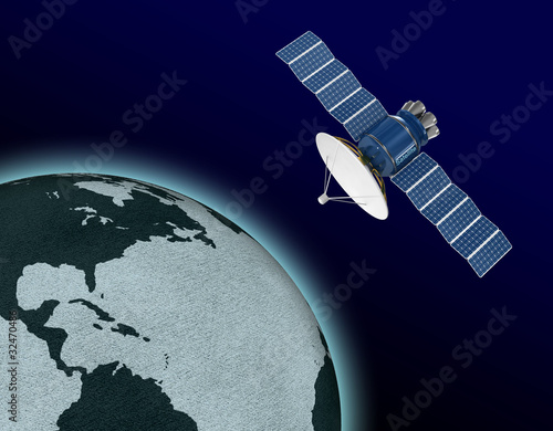Fototapeta premium Artificial satellite in the background of the Earth
