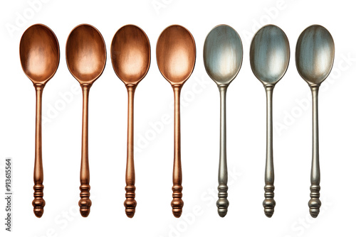 © Awais, Fototapeta premium Artisan Crafted Spoons Displayed in a Row Evoking Elegance and Timeless Kitchen Aesthetics on Transparent PNG Background.