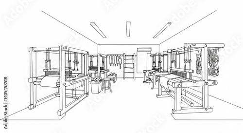 Obraz premium Artisanal textile weaving workshop line art with minimal design and monochrome