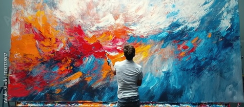 © meta, Obraz premium Artist painting large abstract colorful artwork.