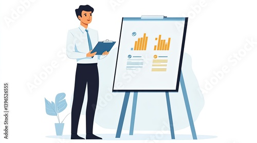 © Noii, Fototapeta premium Artist painting on canvas and man painting a wall in an office setting with a business and creative atmosphere