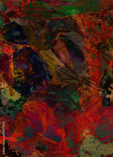 © iuliiawhite, Naklejka premium Artist's palette, palette knife painting. Abstract background with many different colors and paint stains