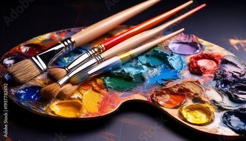 Obraz premium artist s palette with paint and brushes