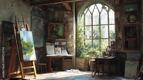 Obraz premium Artist's Studio with Sunlight