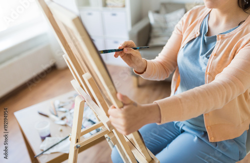 © Syda Productions, Obraz premium artist with brush painting at art studio