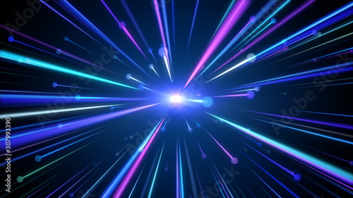 Fototapeta premium Artistic Abstract Blue Purple Glowing Light Beam Follow Spark Circles With...