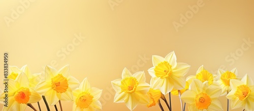 Obraz premium Artistic arrangement of lovely daffodils on a bright backdrop with copy space...