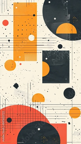 © indyntk, Obraz premium Artistic background, geometric patterns flat design, top view, retro theme, animation, Complementary Color Scheme