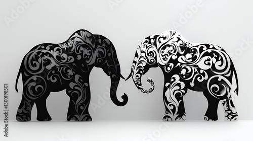 © syarif, Fototapeta premium Artistic Black and White Elephants with Ornate Swirls for Unique Decor