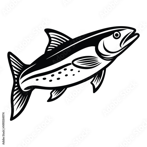 Fototapeta premium Artistic black and white illustration of a swimming salmon showing detailed design features