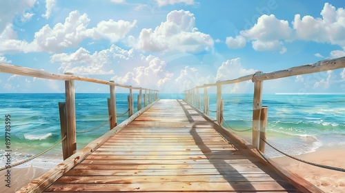Obraz premium Artistic boardwalk with sea view for tour background