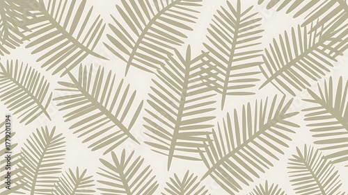 Fototapeta premium Artistic botanical illustration featuring a repeating pattern of tropical fern leaf outlines in a neutral beige color.
