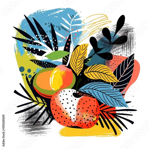 Naklejka premium Artistic botanical illustration with vibrant colors and stylized leaves
