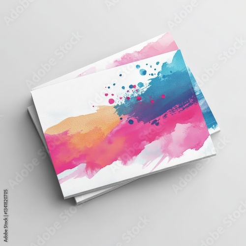 © waddaw, Naklejka premium Artistic Business Card Mockup with Trendy Watercolor Design