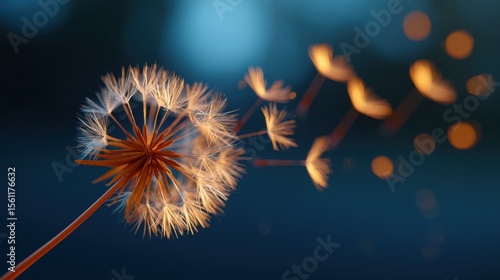© busro, Obraz premium Artistic Capture of Dandelion Seeds Drifting Gracefully in Midair