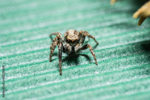 Obraz premium Artistic close ups of a jumping spider or Salticidae, a common spider species...