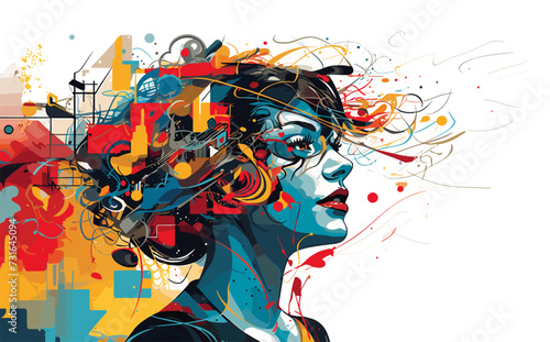 © Влада Яковенко, Obraz premium Artistic collage of the thought process and generating new creative ideas that are contemporary and abstract