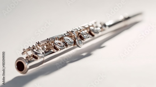 © Nicoum, Fototapeta premium Artistic composition: flute slightly angled with soft light and shadow on white background
