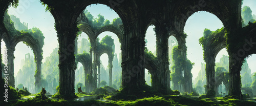 © 4K_Heaven, Naklejka premium Artistic concept painting of a beautiful fantasy temple, background illustration.