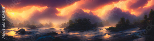 © 4K_Heaven, Fototapeta premium Artistic concept painting of a beautiful river landscape, background illustration