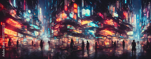 Obraz premium Artistic concept painting of a cyberpunk city, street, background illustration